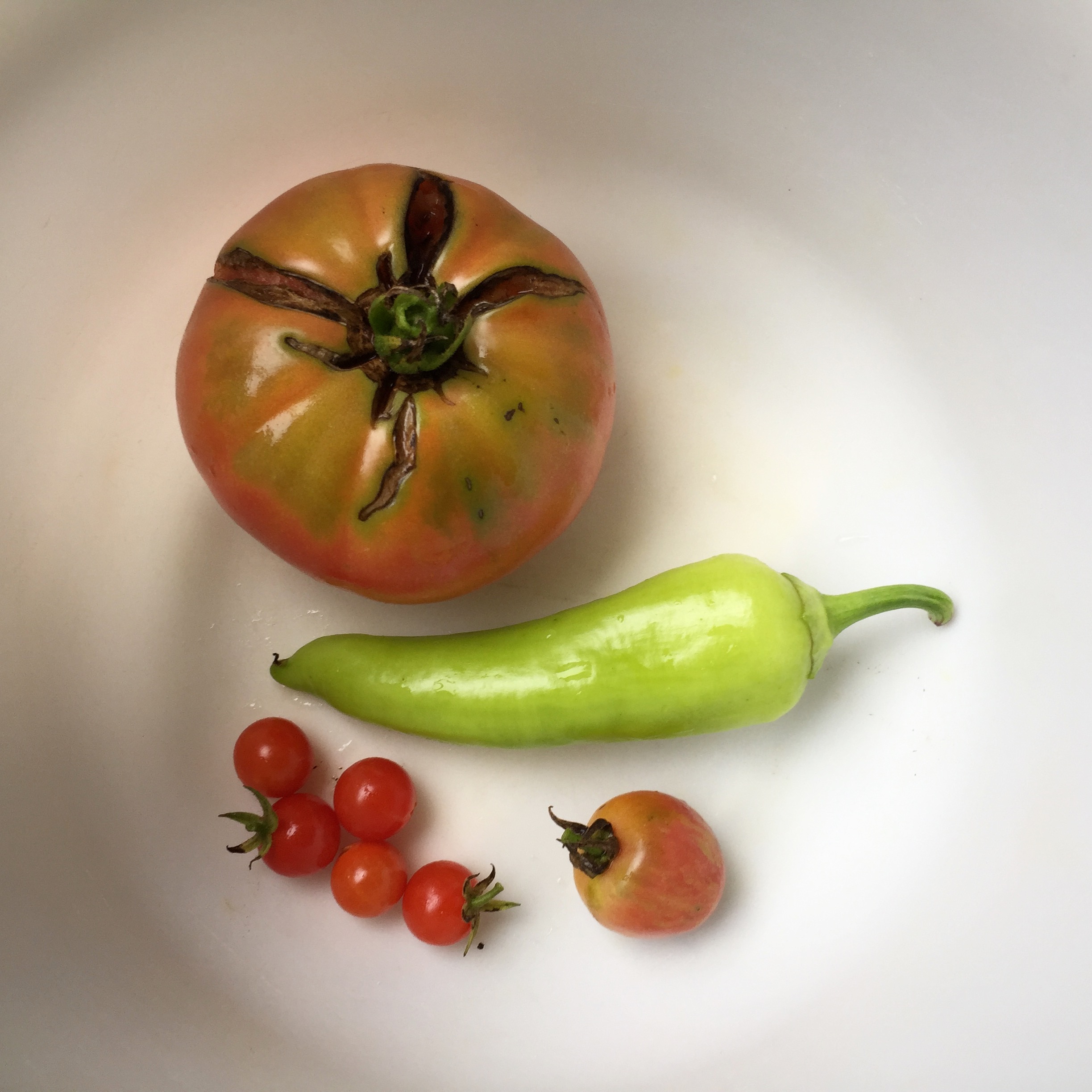 As I am working to clean up the garden for fall, I thought it would be fun (and a bright, colorful lookback) to look at some photos of the most recent pickings from the veggie garden. Sadly, I pulled the last veggies this week, if you don’t count some leafy greens that are still in the ground.